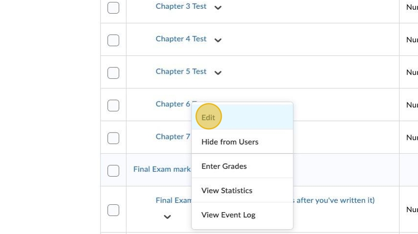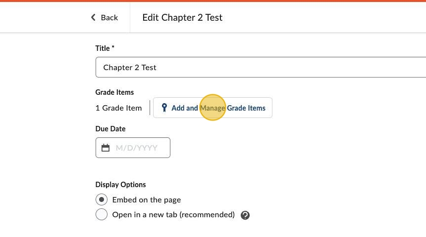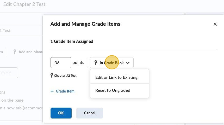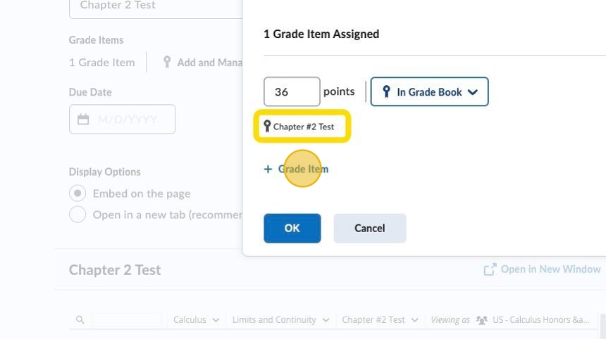 7. Sometimes, D2L will automatically add the item for you, ie: Chapter #2 Test.