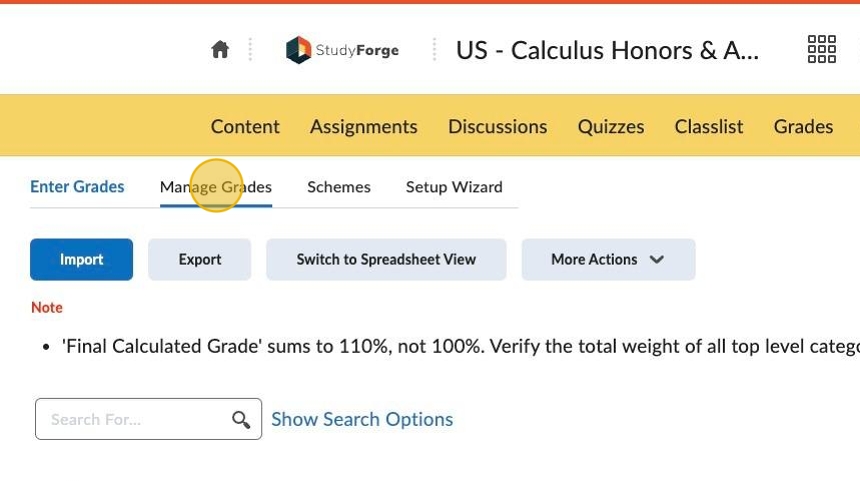 12. Click Manage Grades.