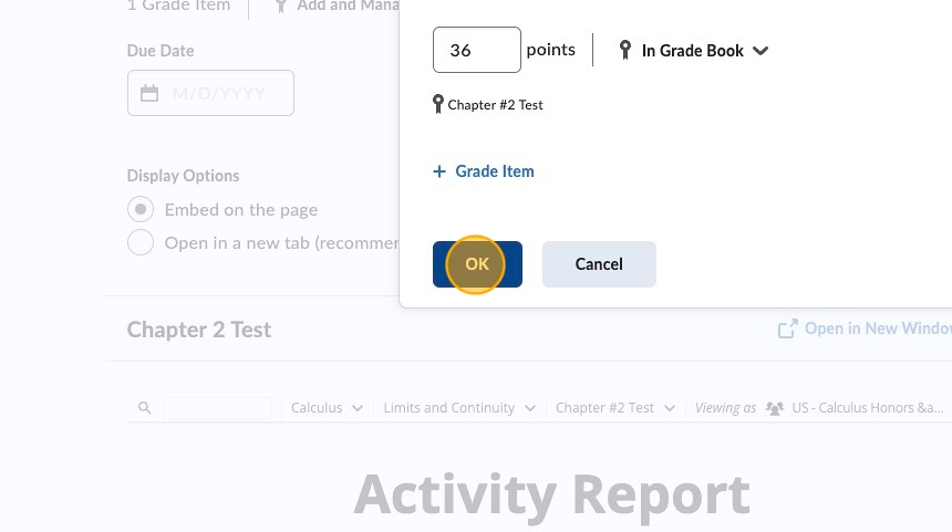 3. Click the Activity you would like to add to the Gradebook.