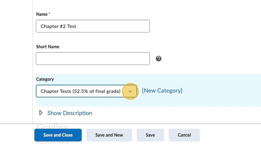 13. Click the dropdown menu on the new graded item.