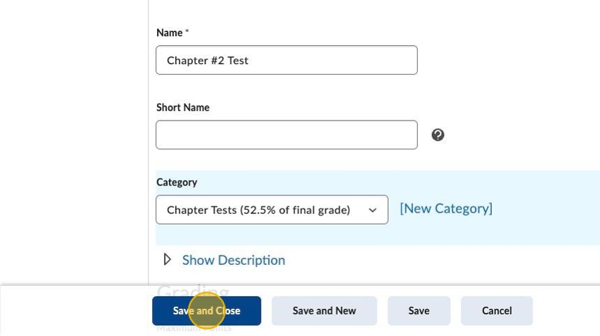 10. Click Save and Close at the bottom of the page.