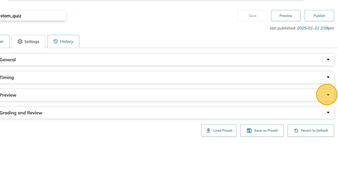1. From the Settings tab in the Quiz Builder, click the Preview section.