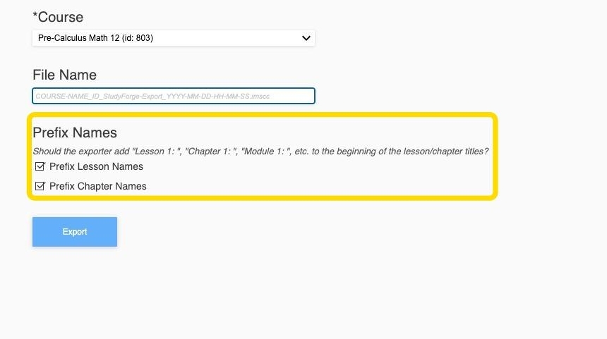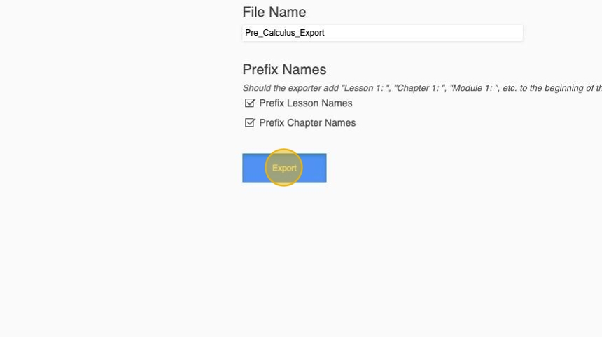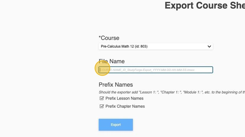 8. Click the Export button to export the course shell.