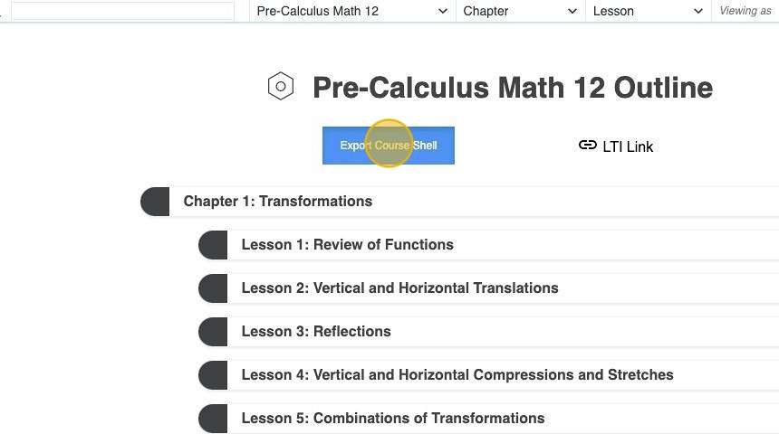 5. Click Export Course Shell.