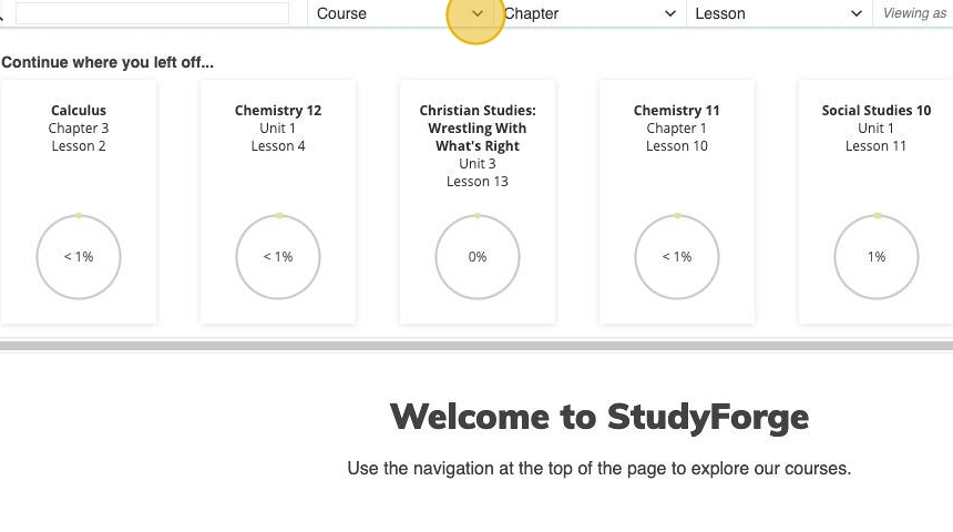 1. Display the list of courses from the navigation bar.