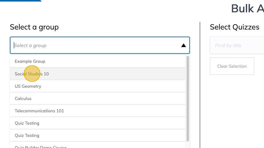 6. Multiple quizzes could be selecting by navigating the courses and checking the quizzes' checkboxes.