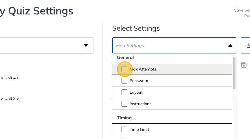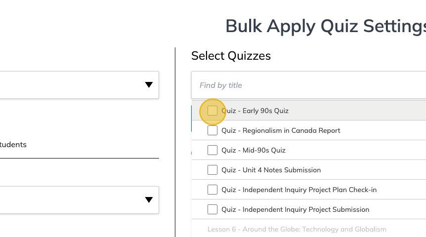 1. Navigate to "Manage Quiz Settings - Bulk apply" from the hamburger menu.