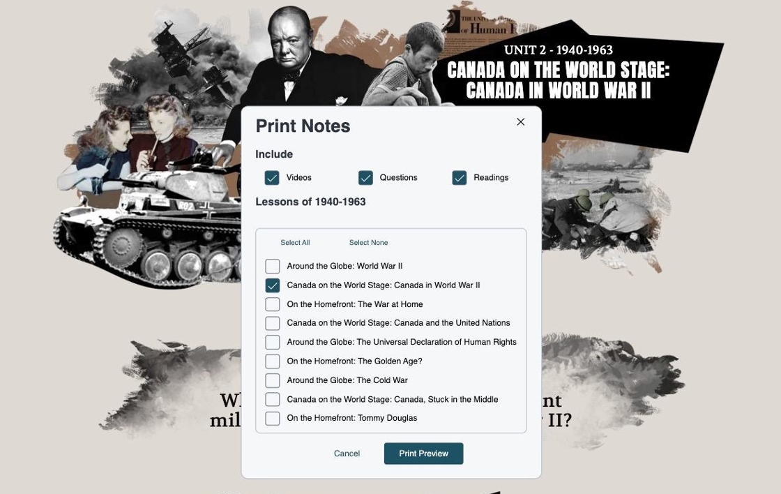 6. Students can click on the Print Notes icon to print the lesson notes.
