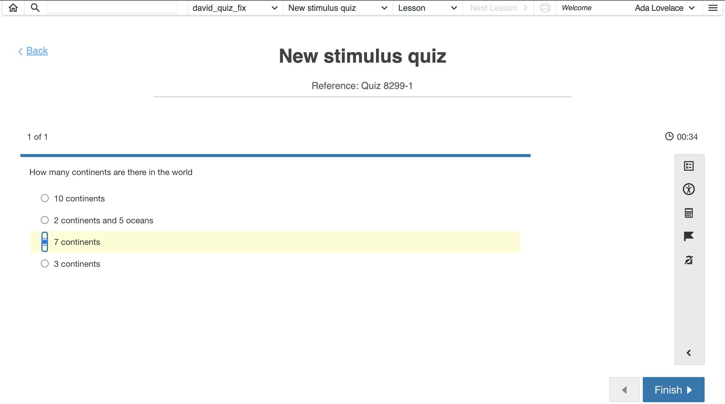 9. The answer key is not visible for the student while attempting the quiz.