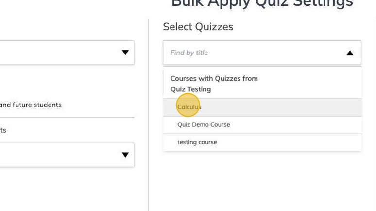5. You can also enable the calculator by using the Bulk Apply feature. Click Manage Quiz Settings - Bulk Apply from the hamburger menu on your navigation bar.