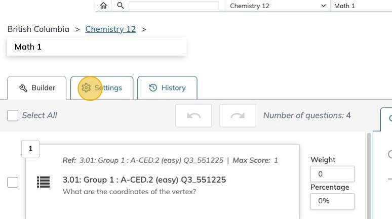 1. To enable the calculator during quiz attempts, click the Settings tab in the Quiz Builder.