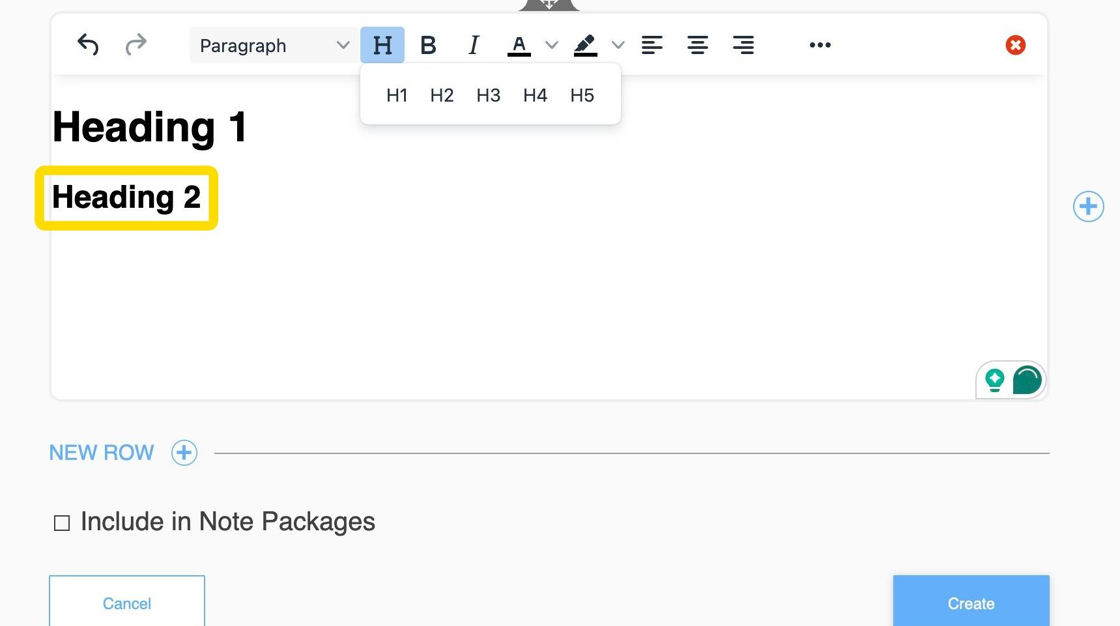 1. You can convert any text into a Header, just select the text and click the Header icon.