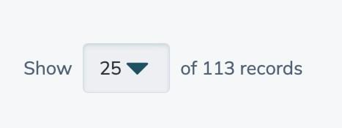 1. When you come to a table in StudyForge, such as Manage Users, from the drop-down list, you can edit the number of records per page to 25, 50, or 100.