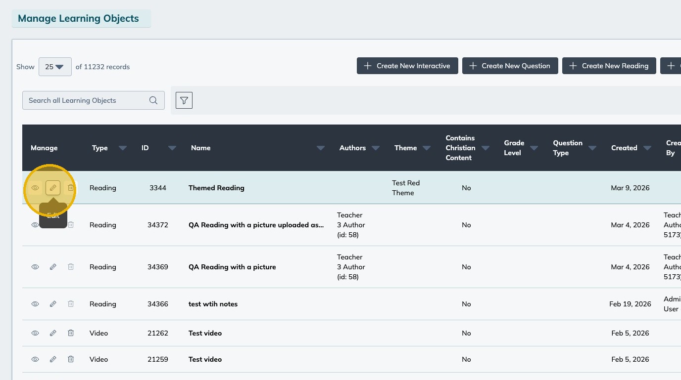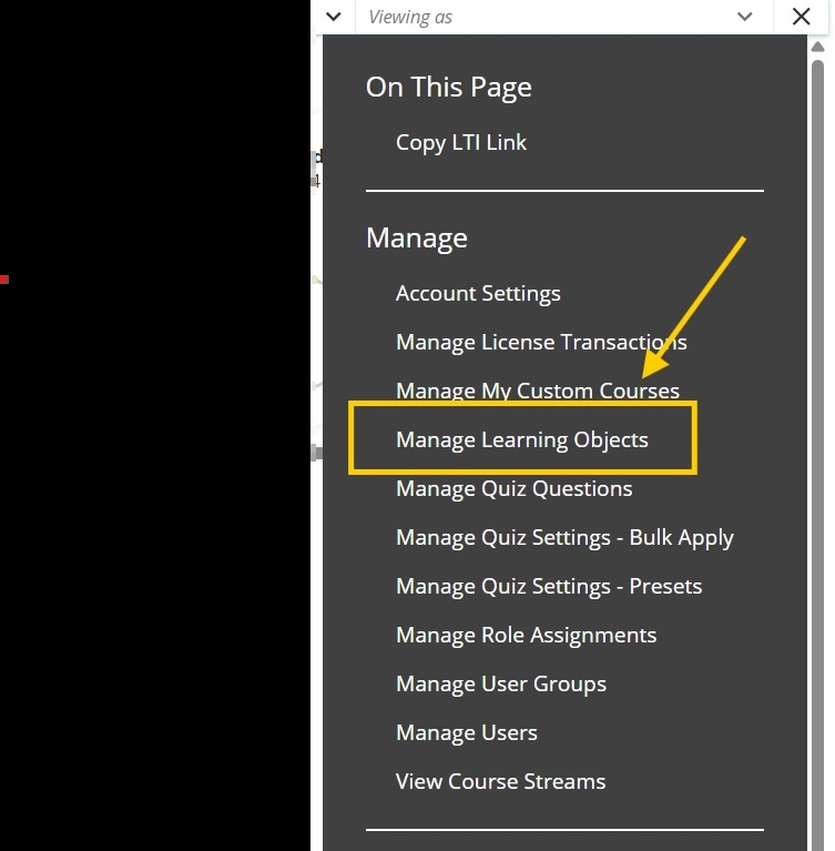 5. You can also access the Learning Object editor directly from the Manage Learning Objects page.